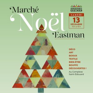 Le Marché public d’Eastman vous invite à son marché de Noël qui aura lieu le samedi 13 décembre, de 10 h à 16 au complexe Saint-Édouard, rue Principale, Eastman.